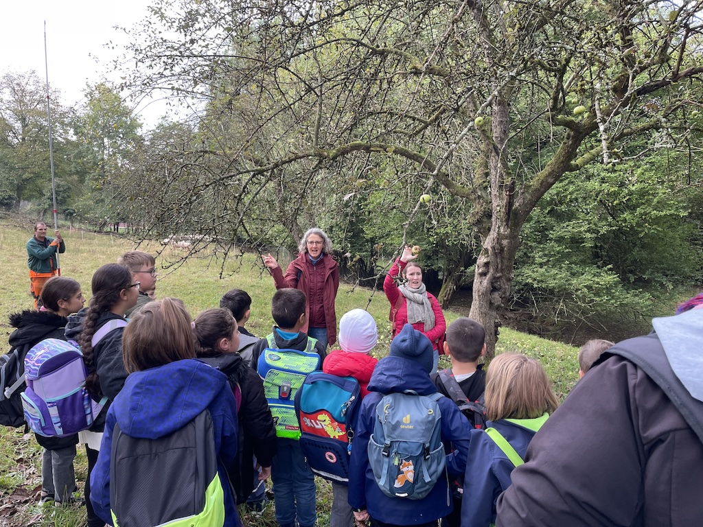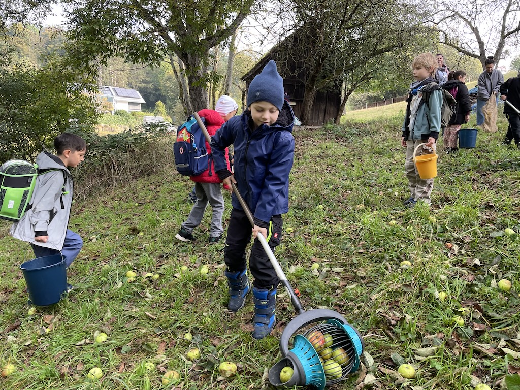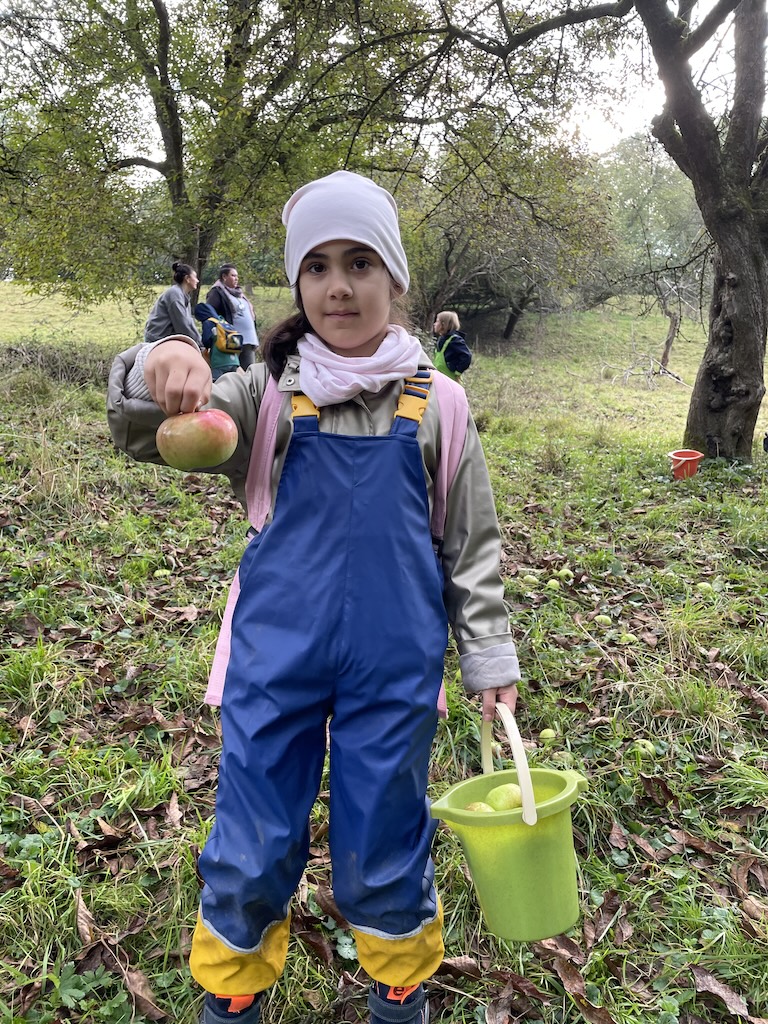 Herbstzeit ist Apfelzeit! Und damit unsere Apfelsaftfirma auch in diesem Schuljahr wieder den leckeren Wilhelm-Busch-Apfelsaft verkaufen kann, sind in den letzten beiden Wochen mehrere Klassen losgezogen um Äpfel zu sammeln. Auf verschiedenen Wiesen in und um Göppingen durften wir die Äpfel von den Bäumen schütteln und in unsere Eimer sammeln. Zusammen füllten wir viele Säcke und stellten sie am Wiesenrand bereit. Dort wurden sie dann mit dem Auto abgeholt und zum Pressen gebracht. Wir hatten viel Spaß beim Sammeln und freuen uns auf den leckeren Saft!