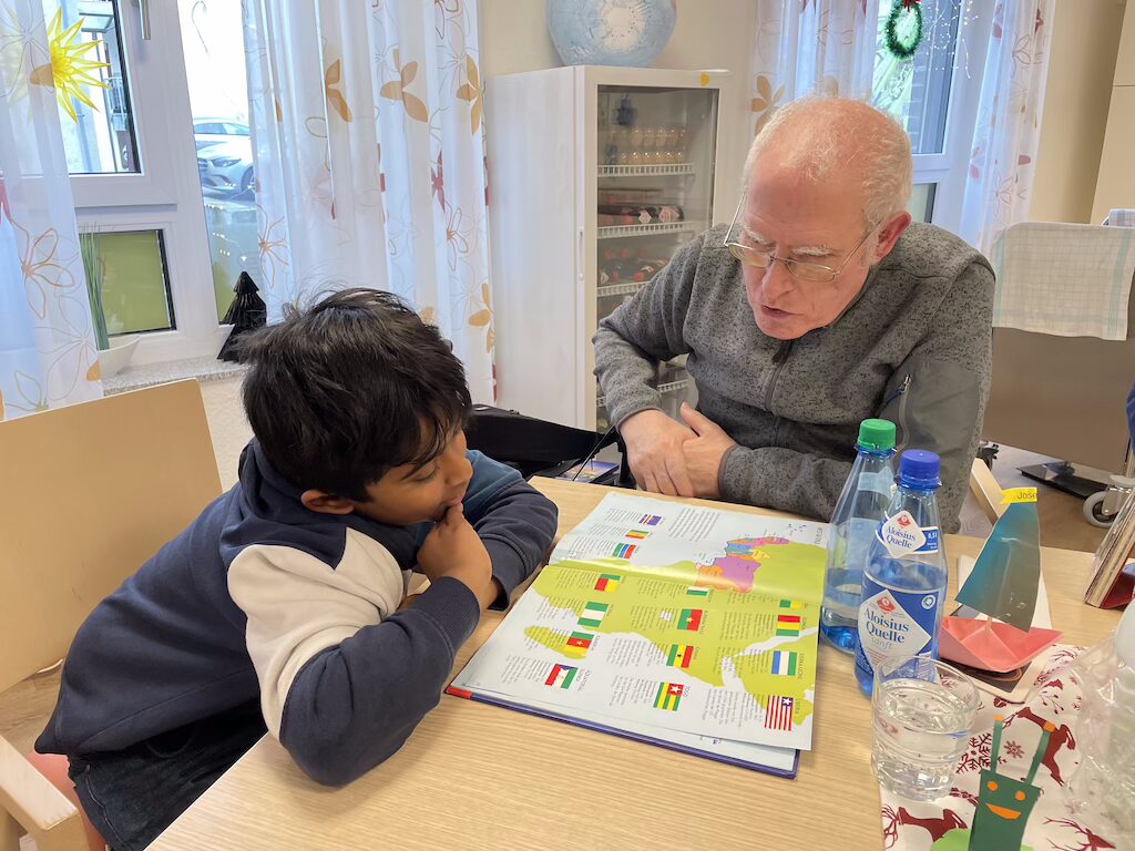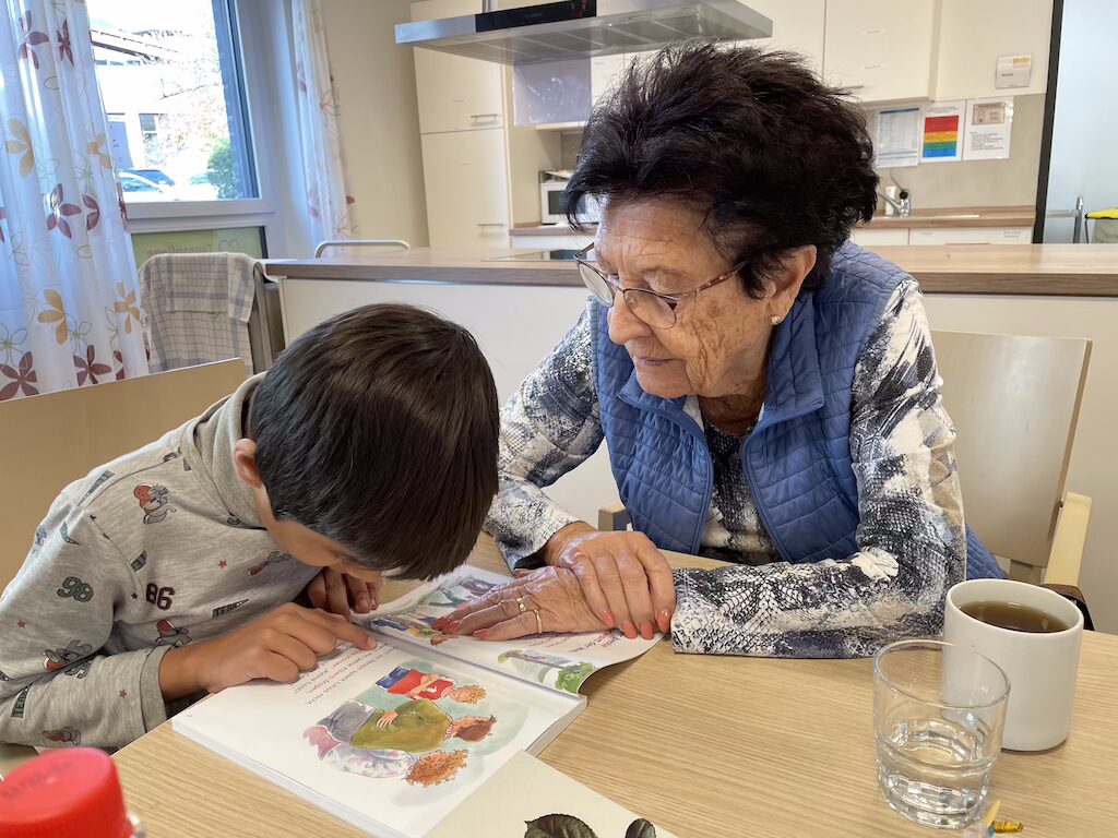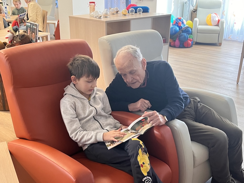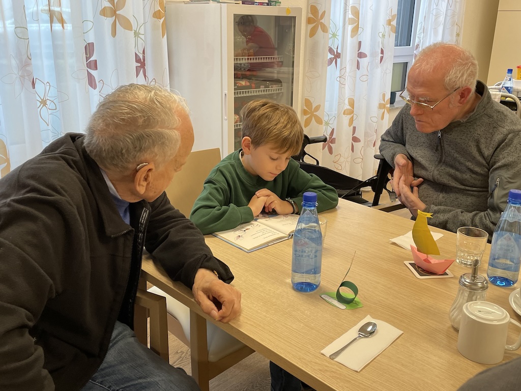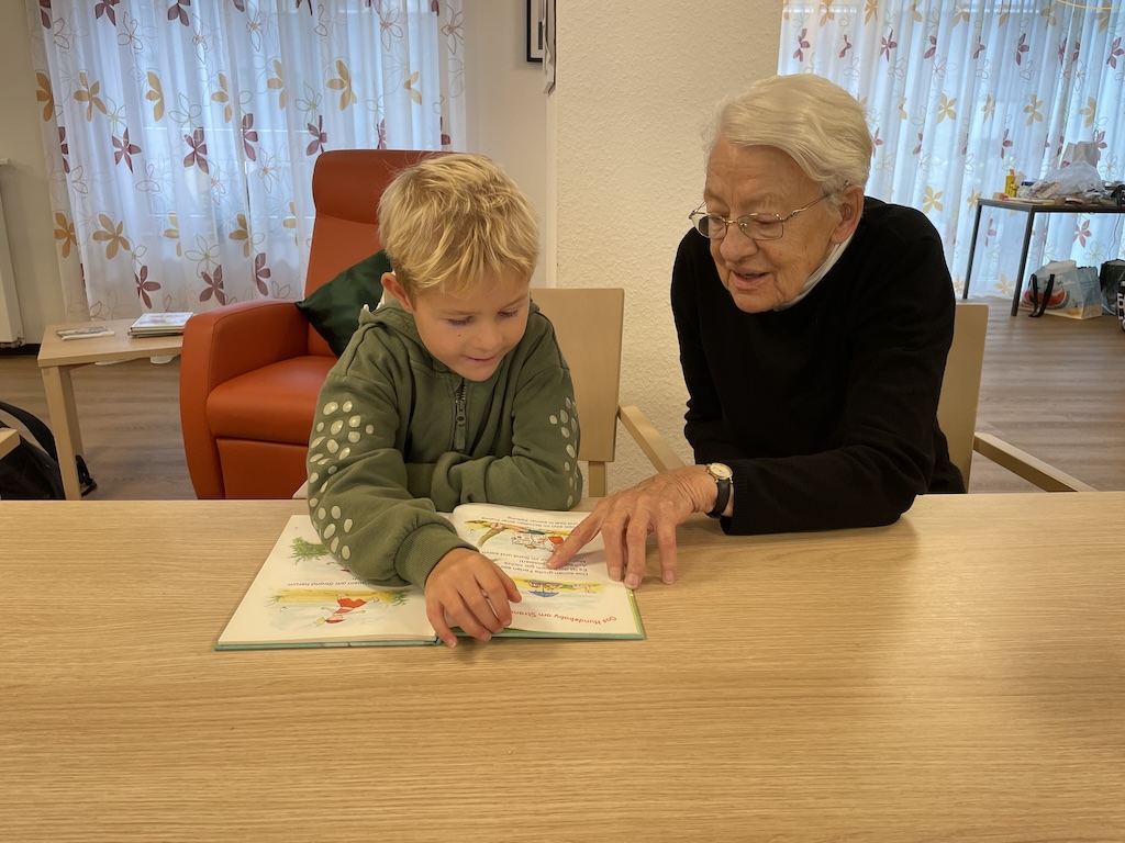 Je nach Lesefähigkeit und Ausdauer lasen die Kinder dann 20 bis 30 Minuten gemeinsam mit den Senioren und unterhielten sich mit ihnen über die Geschichte, die zugehörigen Bildern und andere Dinge. Sowohl die Kinder als auch die Senioren genossen die gemeinsame Zeit und freuten sich schon auf das Wiedersehen am nächsten Freitag.