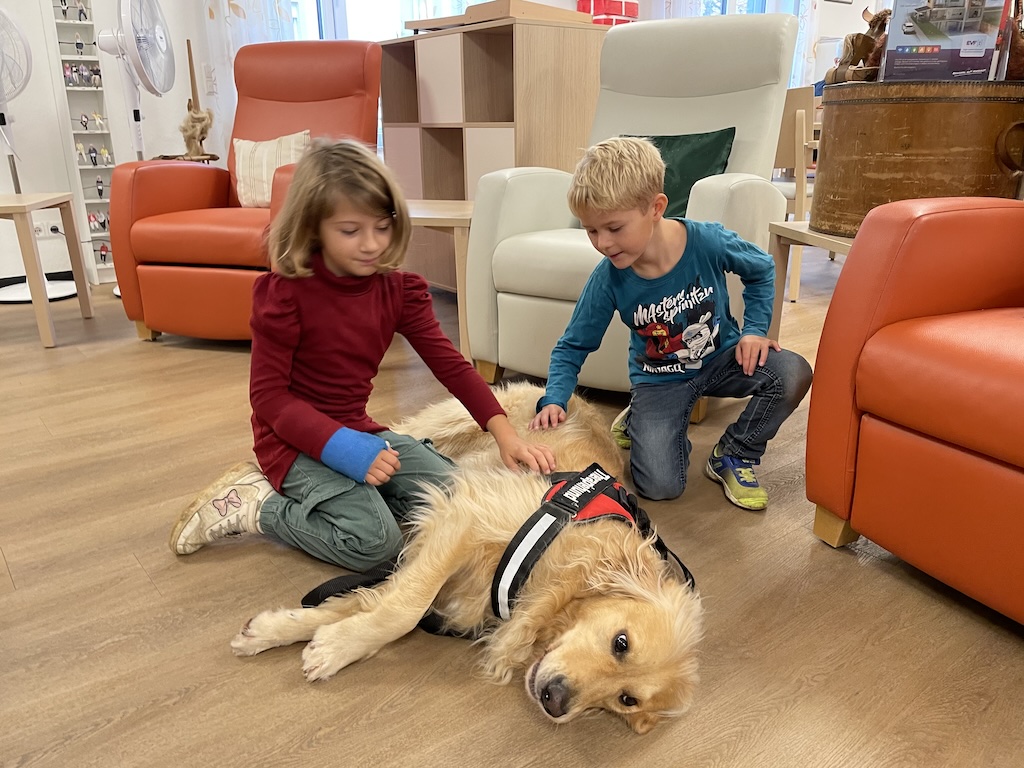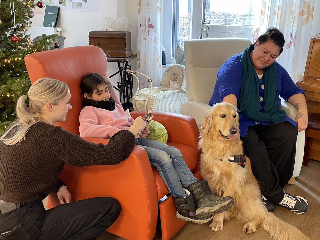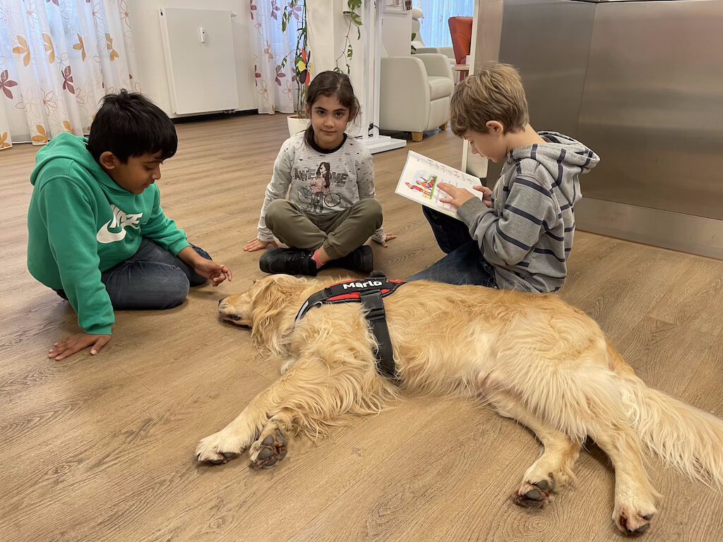 Besonders groß war die Freude bei den Kindern, wenn Therapiehund Marlo da war, dem auch vorgelesen werden konnte. Marlo hörte gerne und geduldig zu, freute sich aber auch besonders über die extra Streicheleinheiten.