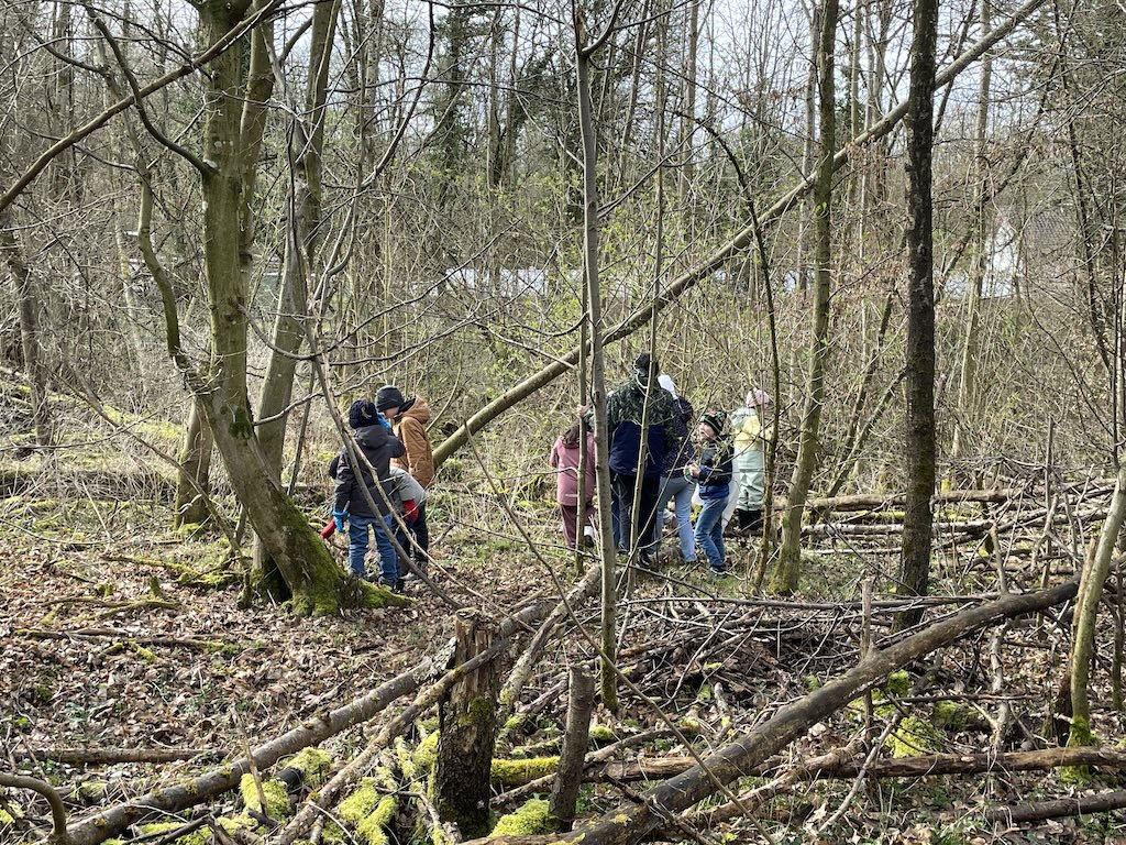 Dann brachen die Gruppen gespannt und voller Vorfreude zu ihren jeweiligen Projekten auf. Die meisten Gruppen wanderten nach einer kurzen Einführung im Klassenzimmer ins Oberholz oder in einen der anderen Wälder rund um Göppingen und verbrachten den gesamten Vormittag im Freien. Dabei gab es so einiges zu entdecken und zu erleben. Zum Glück blieben wir von stärkerem Regen verschont und konnten uns über jeden Sonnenstrahl freuen, der uns erreichte und etwas aufwärmte.