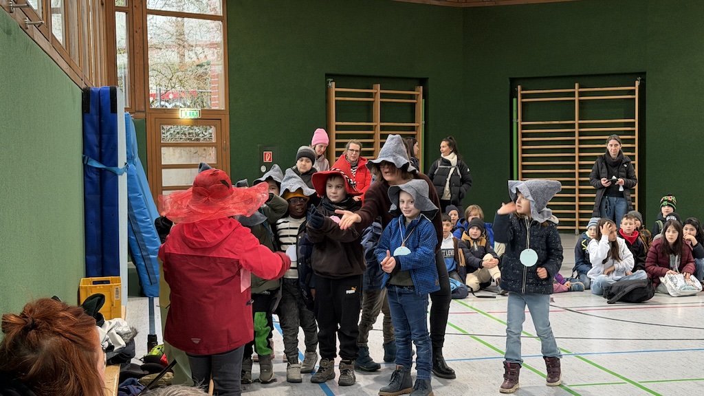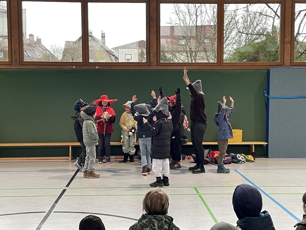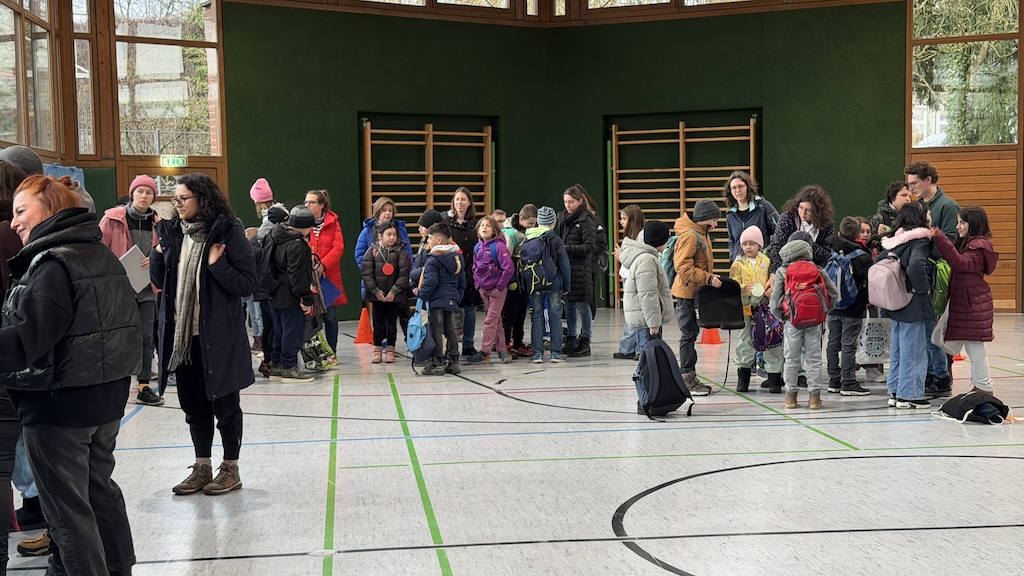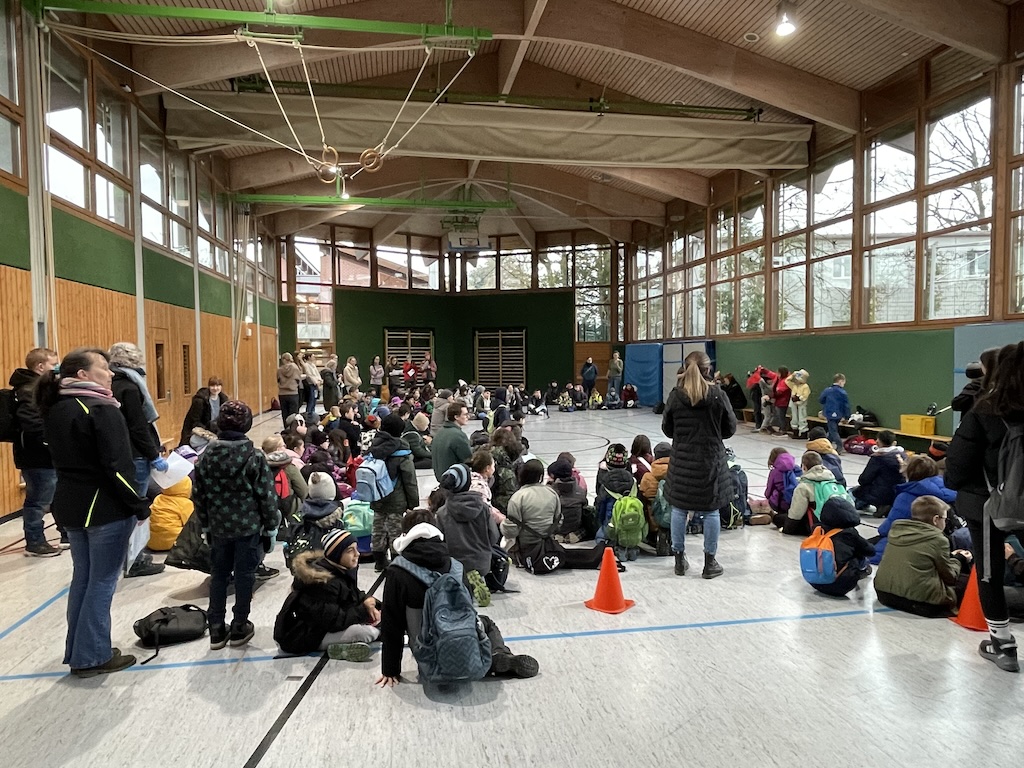 Am Montagmorgen versammelte sich die ganze Schule zunächst in der Turnhalle, um sich in den jeweiligen Gruppen zusammenzufinden.
