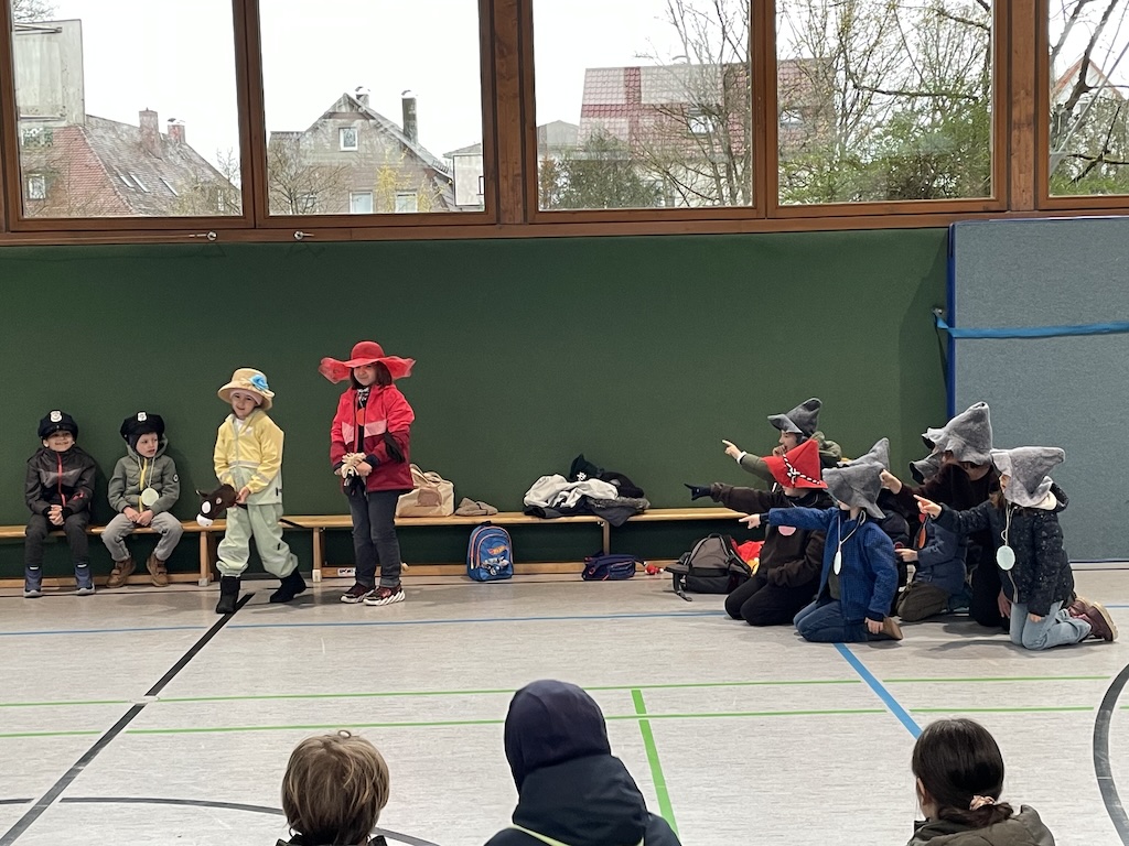 Mit dem Lied „Im Walde von Toulouse“, gesungen von Frau Huber und vorgespielt von der Klasse 1b und Frau Schlenger, stimmten wir uns auf die Tage im Wald ein.