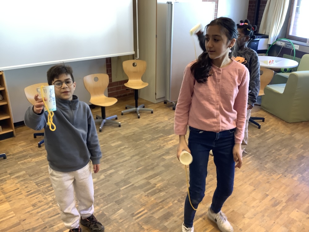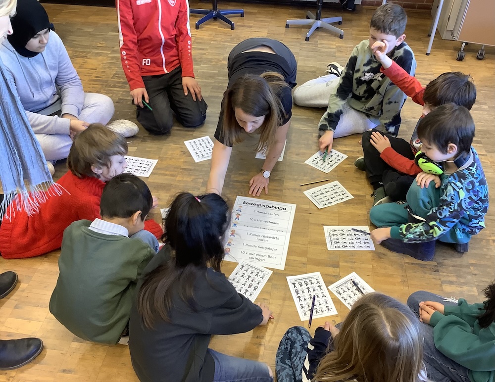 Das Projekt „Bewegungsspiele“ hat neben Dosenwerfen, Stopptanzen, Luftballontanzen, Reaktions- und Wahrnehmungsspielen, Bingo mit Bewegung und Treppensteigspielen noch gesunde Pausen mit Obst und Gemüse sowie Infos zum Körper angeboten. Wir haben einen Wurfbecher gebastelt mit dem einige Kinder bis zu 100 Treffer geschafft haben. Alle hatten drinnen und draußen Spaß. Sogar Rollerfahren und Fußballspielen in der Sonne waren am Schluss meistens noch dabei.